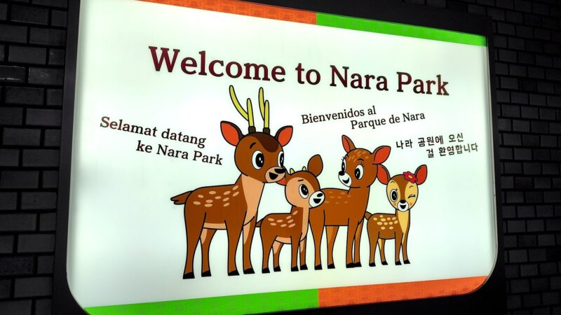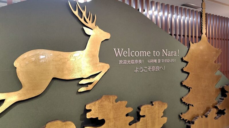 「WELCOME TO NARA」のオブジェ: 奈良を訪れた旅人を温かく迎えてくれます。