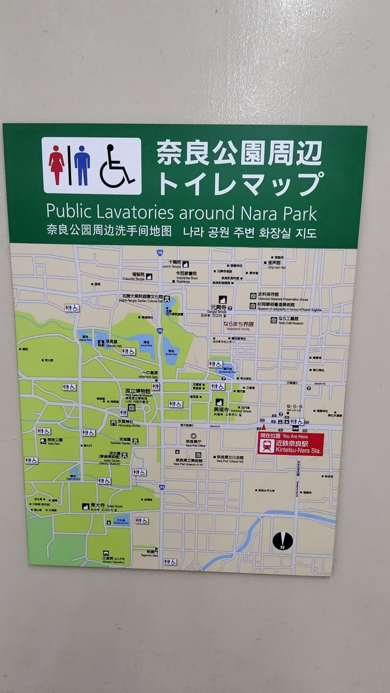 迷路のように感じるかもしれませんが、壁に掲示されている「トイレ標識」をじっくり確認すれば大丈夫。落ち着いてトイレ標識に沿って進めば安心です。