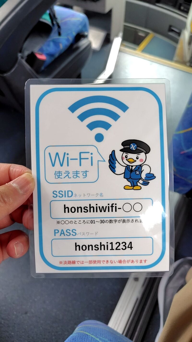座席もゆったりしているので、なんばまでの数時間があっという間に感じられます。