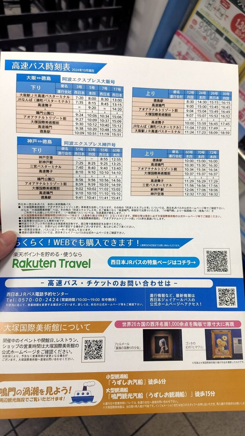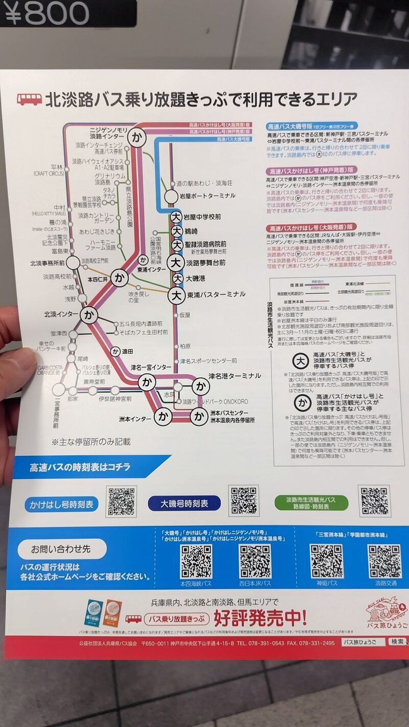 窓口では、旅をさらに楽しくする最新のチラシも配布されていました。北淡路乗り放題バス: 淡路島の北部を自由に巡れるお得なチケット。