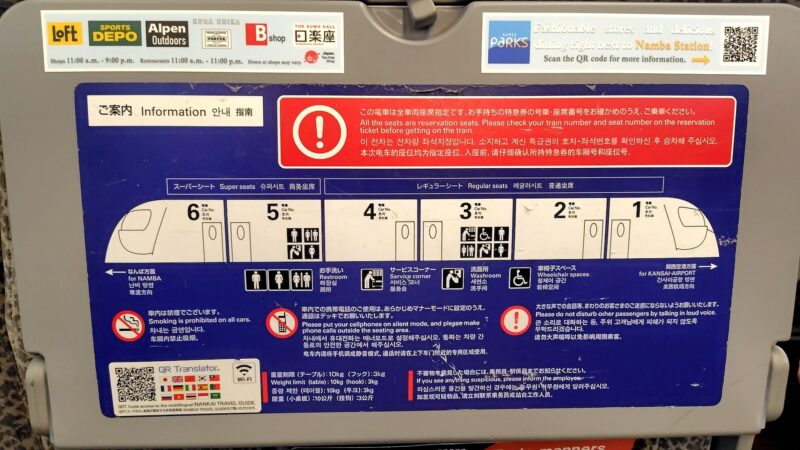 移動手段を単なる「移動」ではなく、「体験」に変えてくれるのが特急ラピートの凄さ。 見た目の格好良さはもちろん、無料Wi-Fiや親切な案内、そして大阪らしいデザインまで、すべてが詰まった最高の特急です。